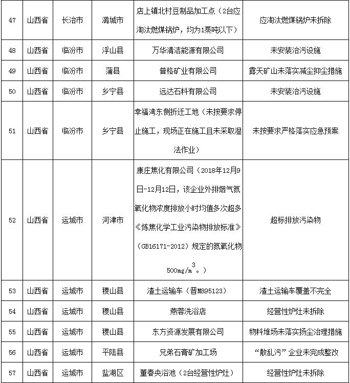 其中,河北省石家莊市元氏縣1家,保定涿州市1家;山西省臨(lin) 汾市浮山縣1家、鄉(xiang) 寧縣1家;河南省安陽林州市3家,三門峽市盧氏縣1家;陝西省鹹陽市渭城區1家,渭南市渭南高新技術產(chan) 業(ye) 開發區1家。