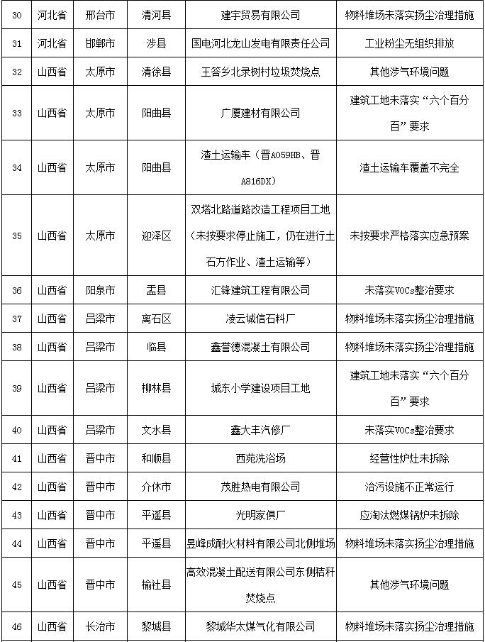 其中,河北省廊坊市安次區1家;山西省太原市陽曲縣2家,呂梁市柳林縣1家,運城市稷山縣1家;河南省洛陽市澗西區1家;陝西省西安市周至縣1家。